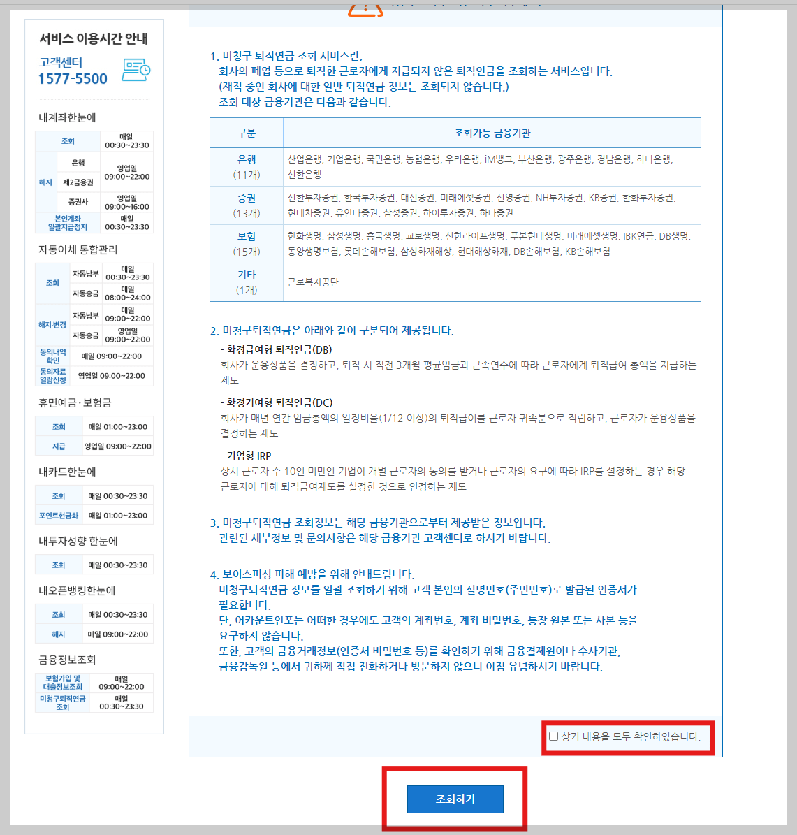 퇴직연금조회 같은 금융 관련 서비스는 불확실한 방법으로 진행 시, 개인정보 유출 위험과 더불어 절차도 복잡하고 어려워 시간만 버리게 되는 경우가 많습니다.